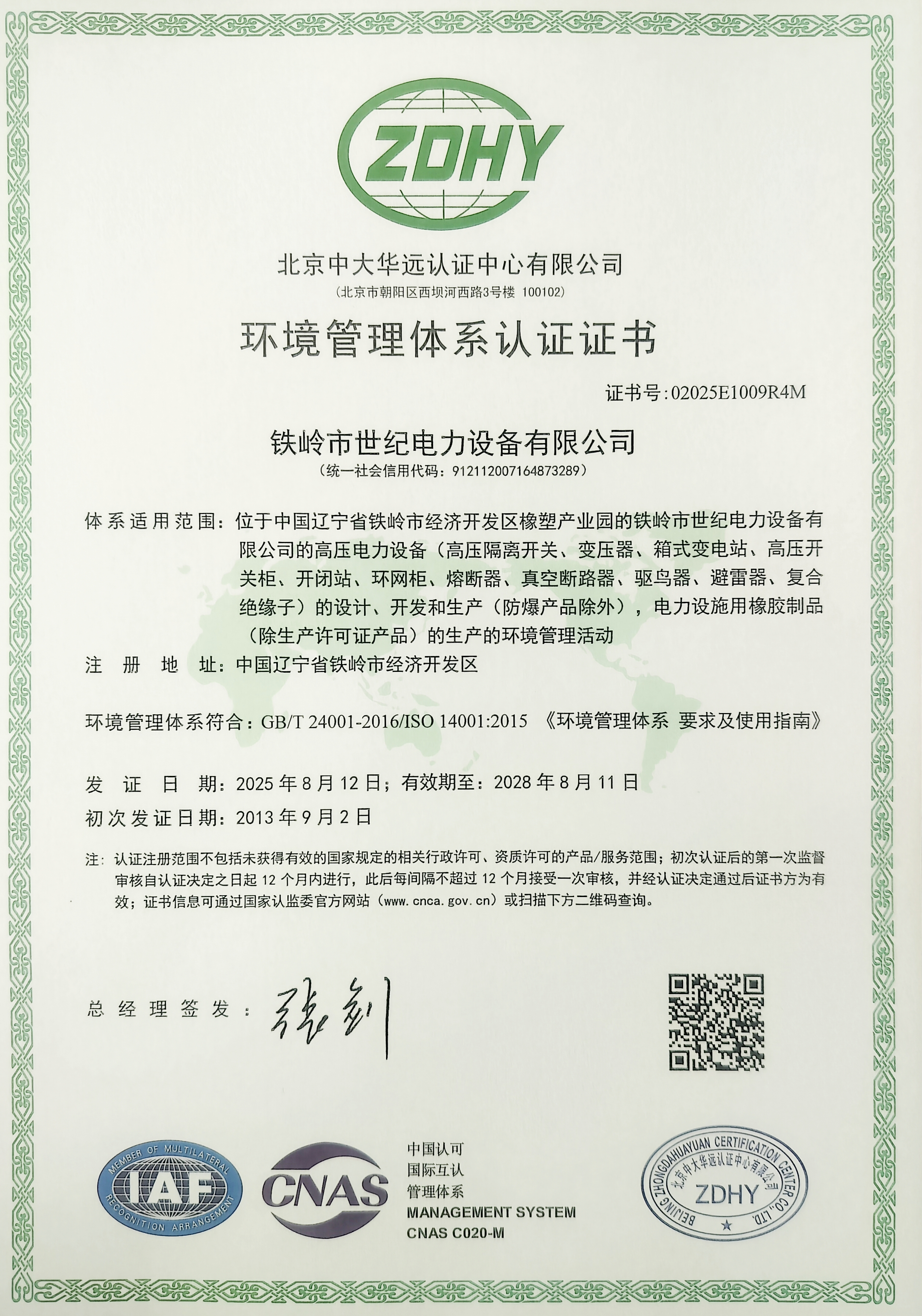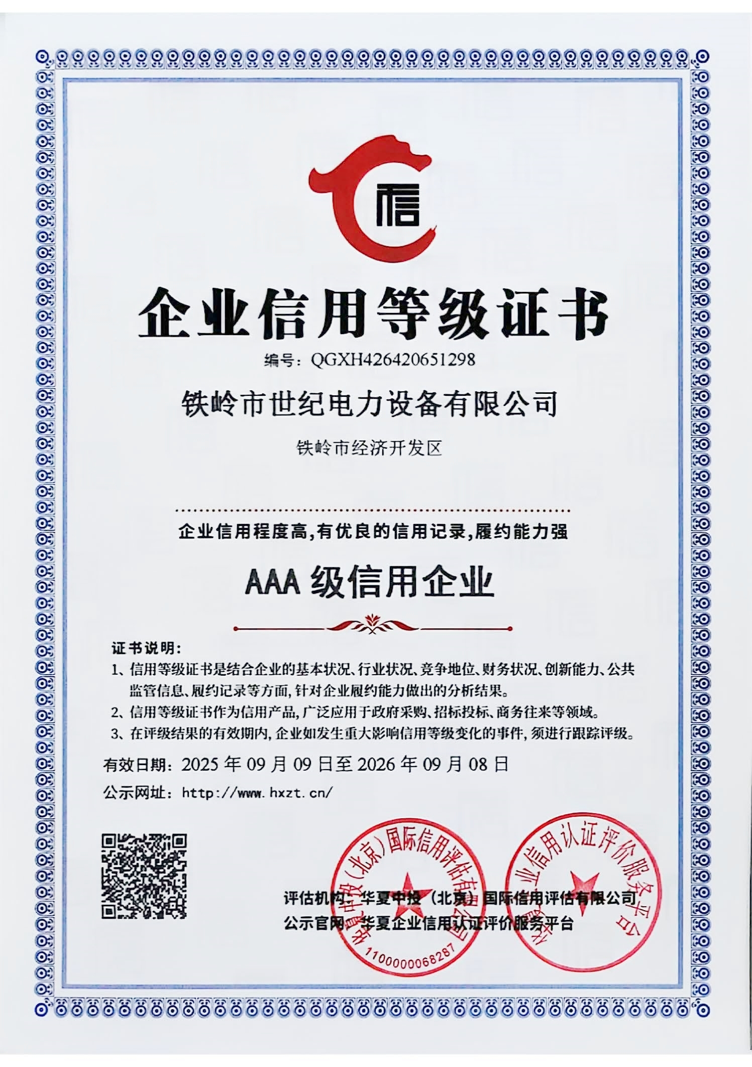 鐵嶺市世紀(jì)電力設(shè)備有限公司是集科研開發(fā)、生產(chǎn)制造、用戶服務(wù)于一體的國(guó)家高新技術(shù)企業(yè),始建于1999年,位于鐵嶺經(jīng)濟(jì)開發(fā)區(qū),占地面積5萬(wàn)余平方米,建筑面積2萬(wàn)余平方米。主要從事國(guó)家電網(wǎng)配套戶外高低壓隔離開關(guān)、電力電纜、變壓器成套裝置、高低壓開關(guān)柜、箱式變電站、絕緣子等產(chǎn)品的研發(fā)、生產(chǎn)和銷售。公司現(xiàn)有國(guó)家發(fā)明專利6項(xiàng)、實(shí)用新型專利9項(xiàng),公司通過(guò)了ISO9001國(guó)際質(zhì)量管理體系認(rèn)證、ISO14001環(huán)境管理體系認(rèn)證和ISO 45001職業(yè)健康安全體系認(rèn)證。